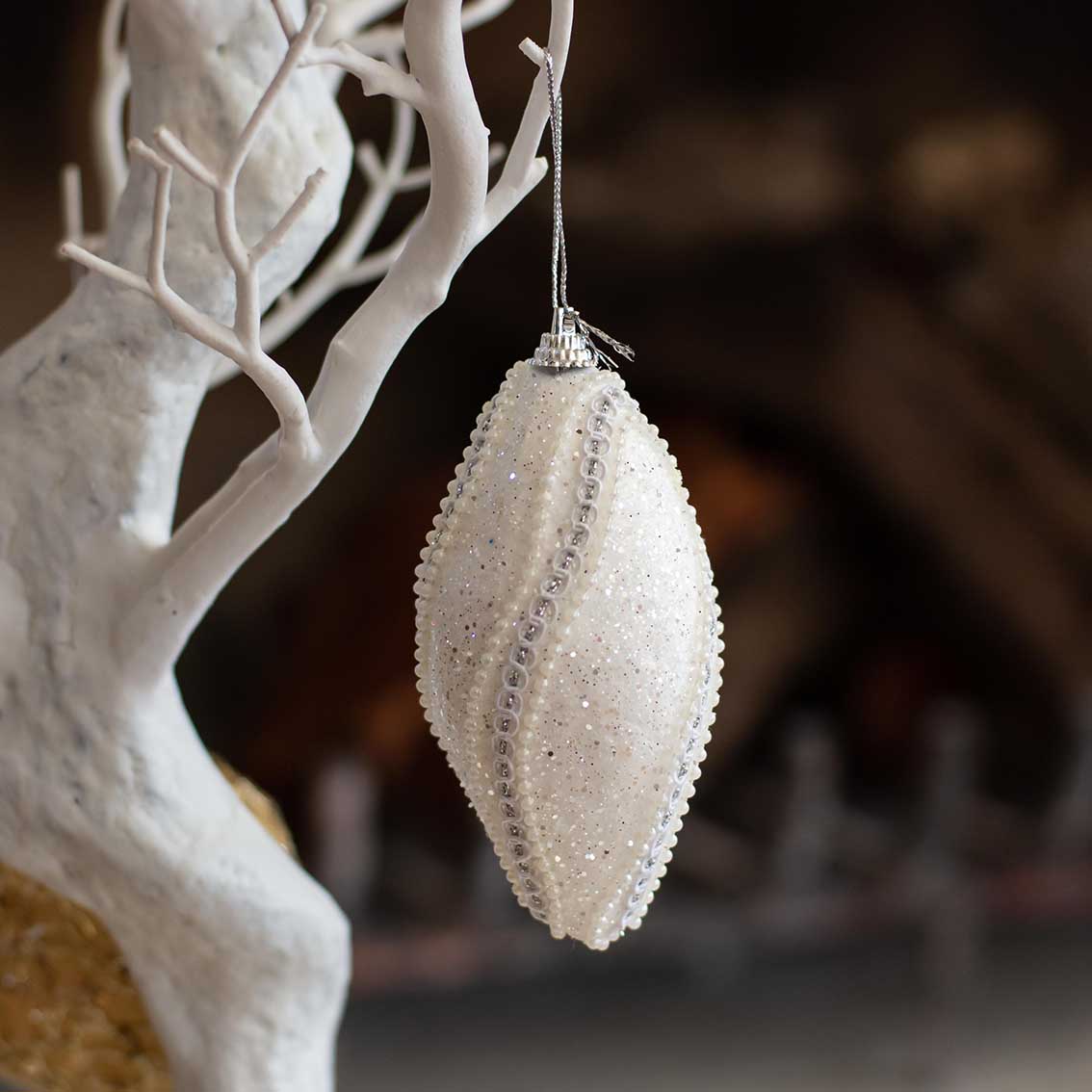 Adorno navideño color blanco y plata de10 cm por 3 u.