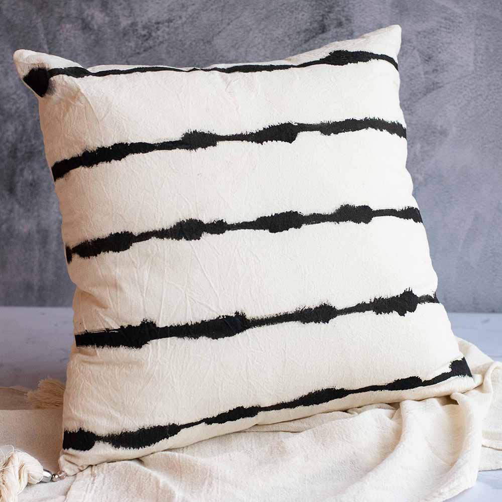Almohadón de tussor natural con rayas irregulares negras de 50x50cm.