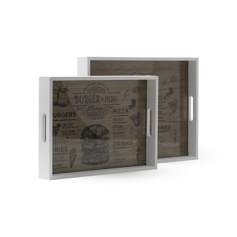 Set x 2 bandejas de madera blanca y vidrio de 40cm x 30cm