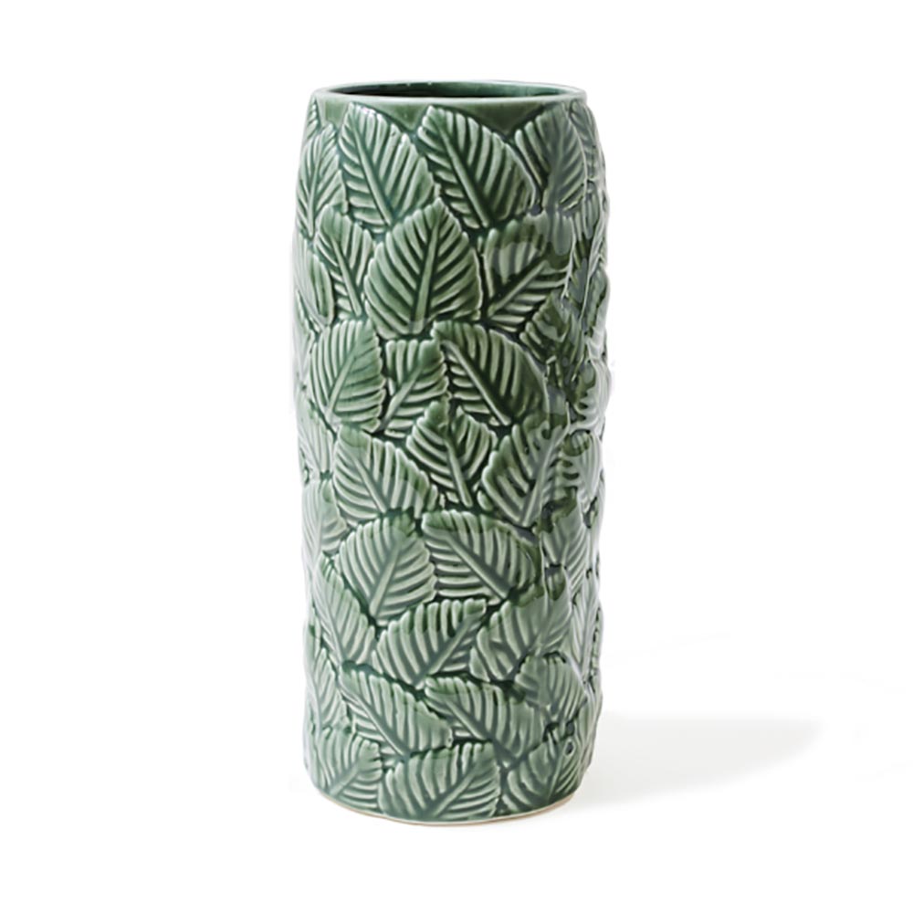 Jarrón de cerámica con relieves en color verde de 32cm.