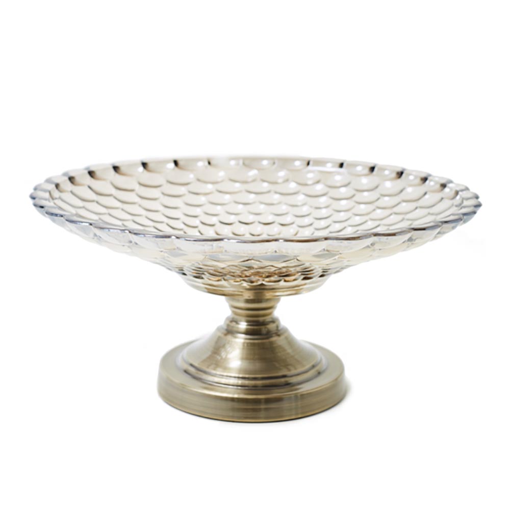 Bandeja de vidrio tramado con base. 23x23x18cm