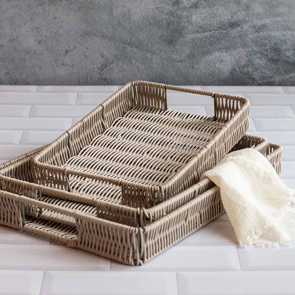 Set de 3 bandejas rectangulares de 31×21/ 35×25/ 39x30cm en color gris.