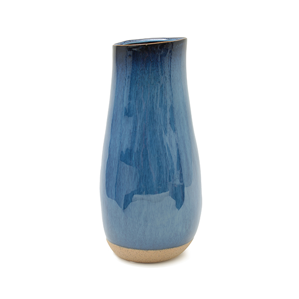 Jarrón de cerámica azul de 34cm x 17cm.