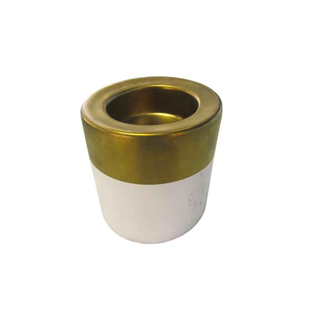 Portavela de cerámica combinado blanco y dorado de 10cm.
