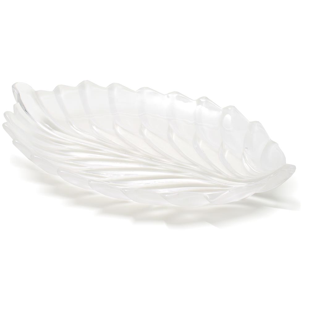 Bandeja de vidrio transparente en forma de hoja de 29cm.