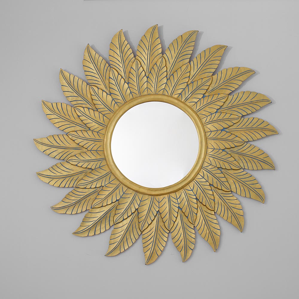 Espejo redondo con forma de girasol de 120cm en color dorado.