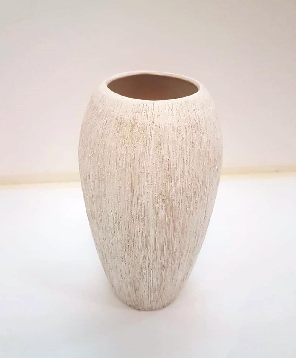 Jarrón de cerámica texturada color arena de 26cm.