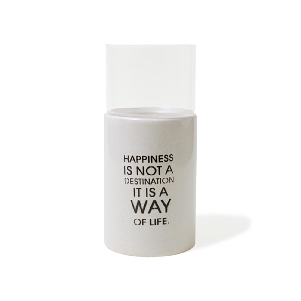 Portavela de cerámica blanca con vidrio de 18cm.