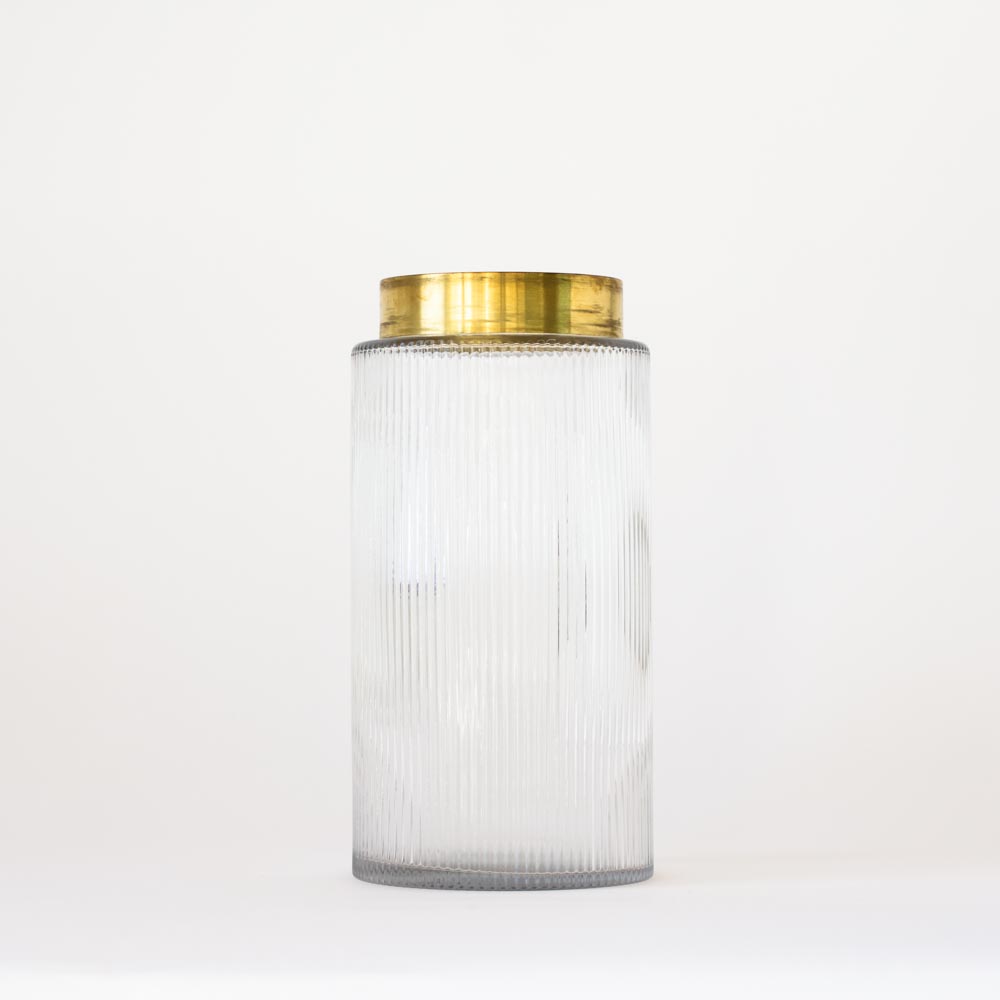 Jarrón de vidrio transparente combinado con metal dorado de 30cm