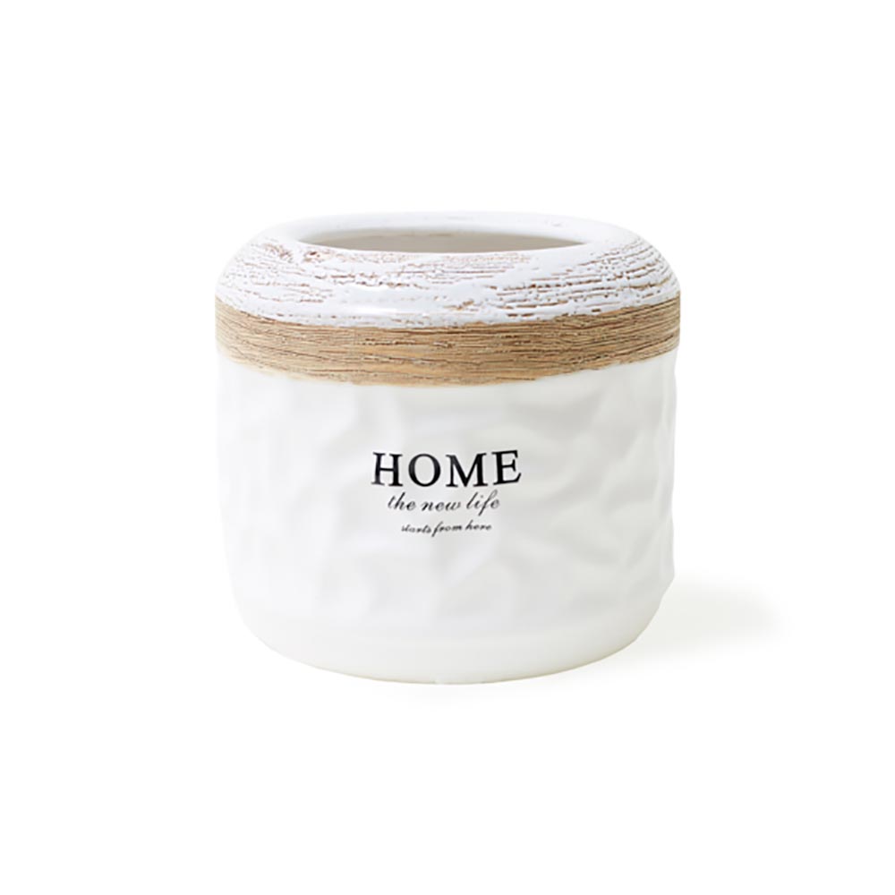 Jarrón de cerámica texturada combinado en blanco, marrón y gris de 13cm x13cm.