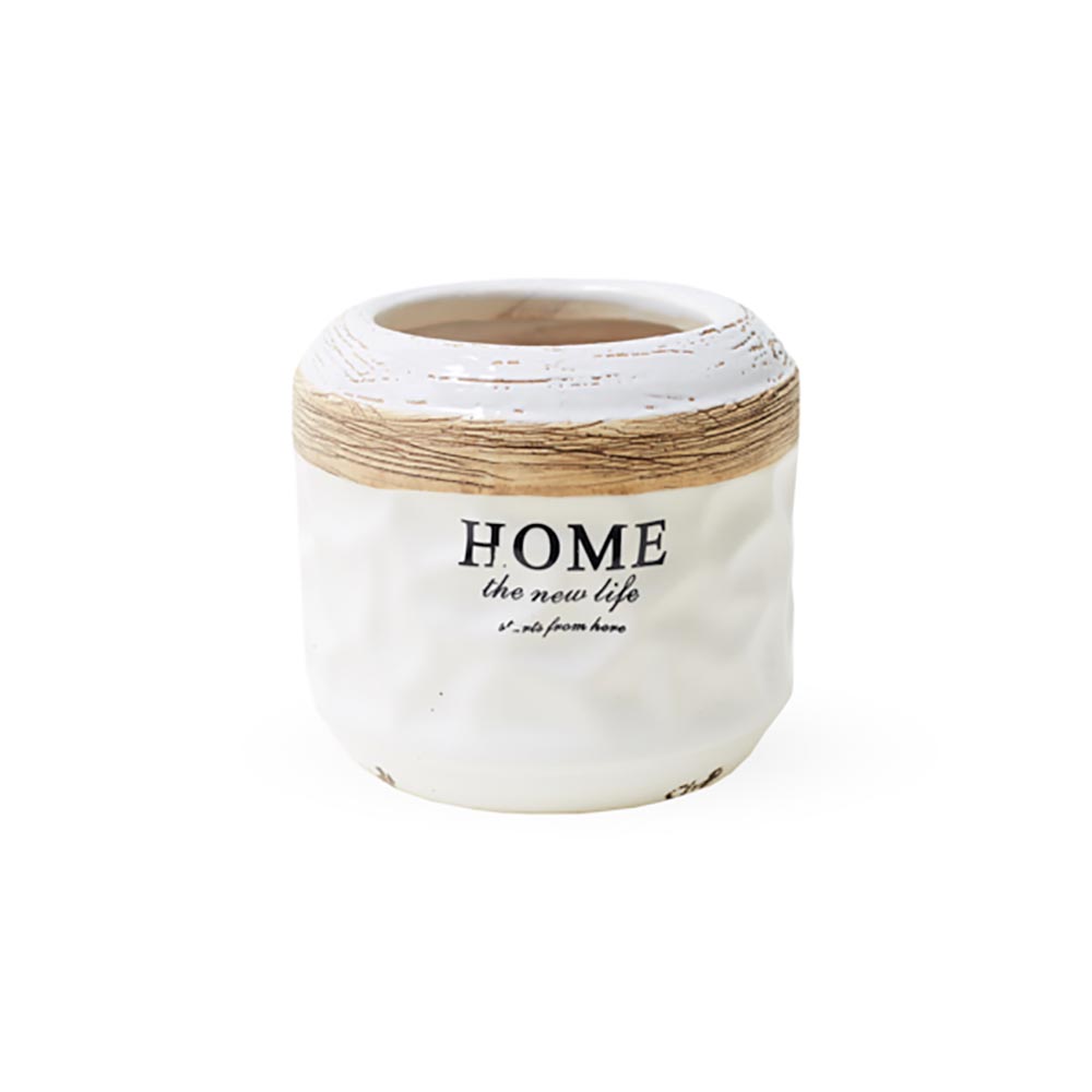 Jarrón de cerámica texturada combinado en blanco, marrón y gris de 10cm x 8cm.