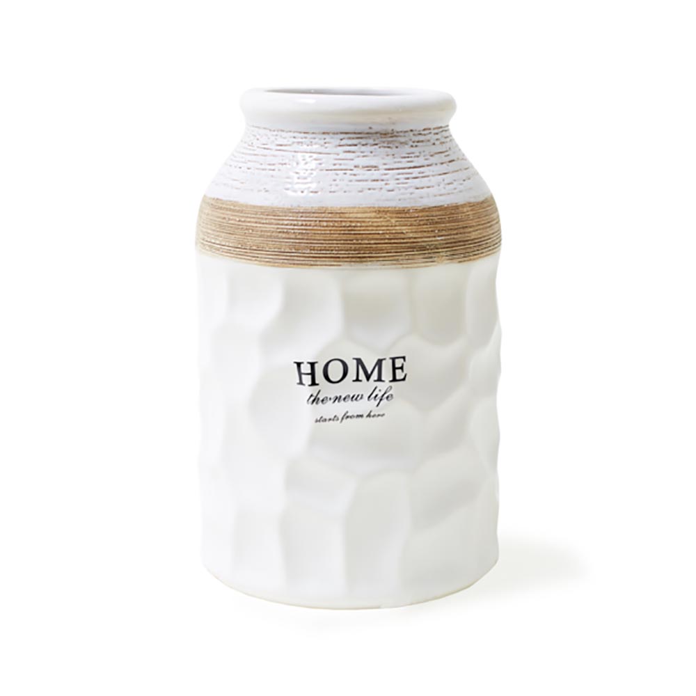 Jarrón de cerámica texturada combinado en blanco, marrón y gris de 20cm x 12cm.