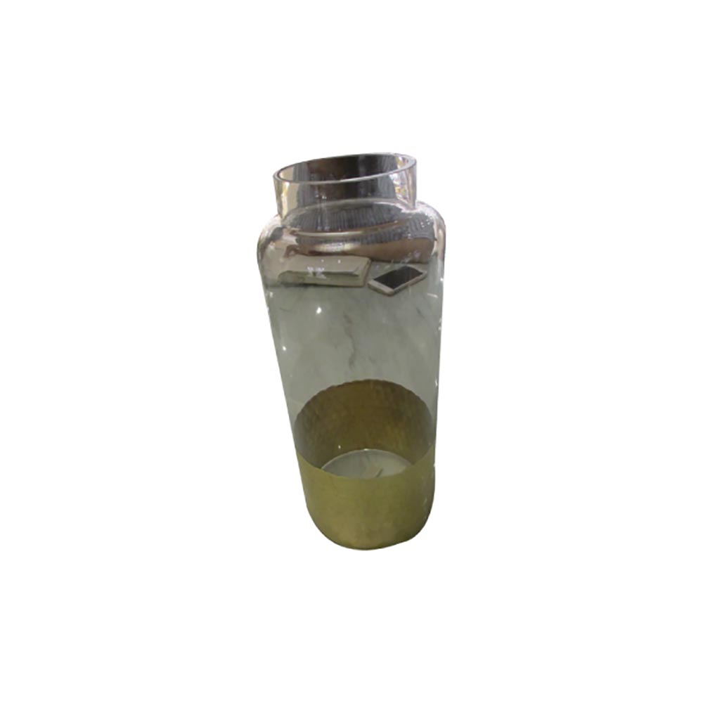 Jarrón de vidrio con detalles en metal dorado de 31cm.