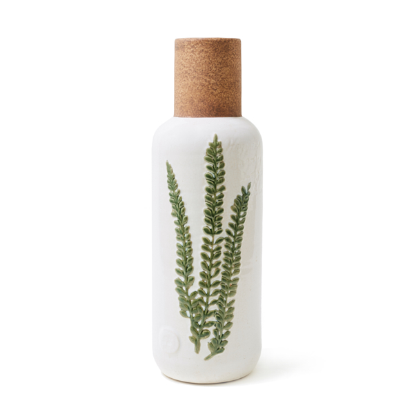 Jarrón de cerámica en color blanco, verde y beige
