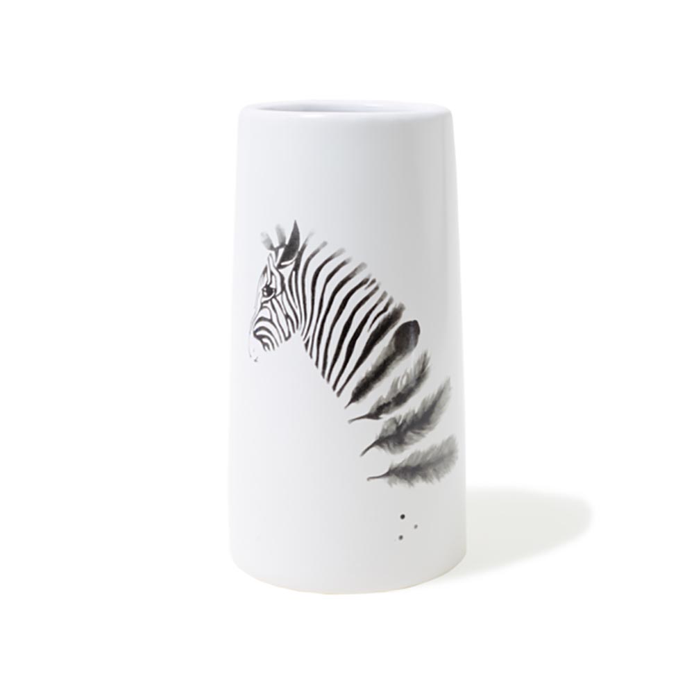 Jarrón de cerámica blanco de 20cm con imagen de cebra.