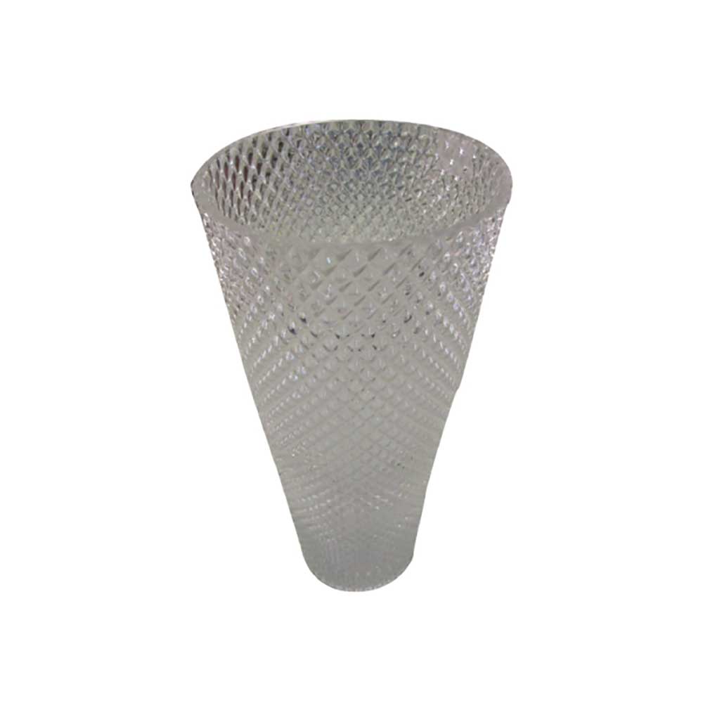 Jarrón símil cristal texturado en forma de cono invertido de 35cm.