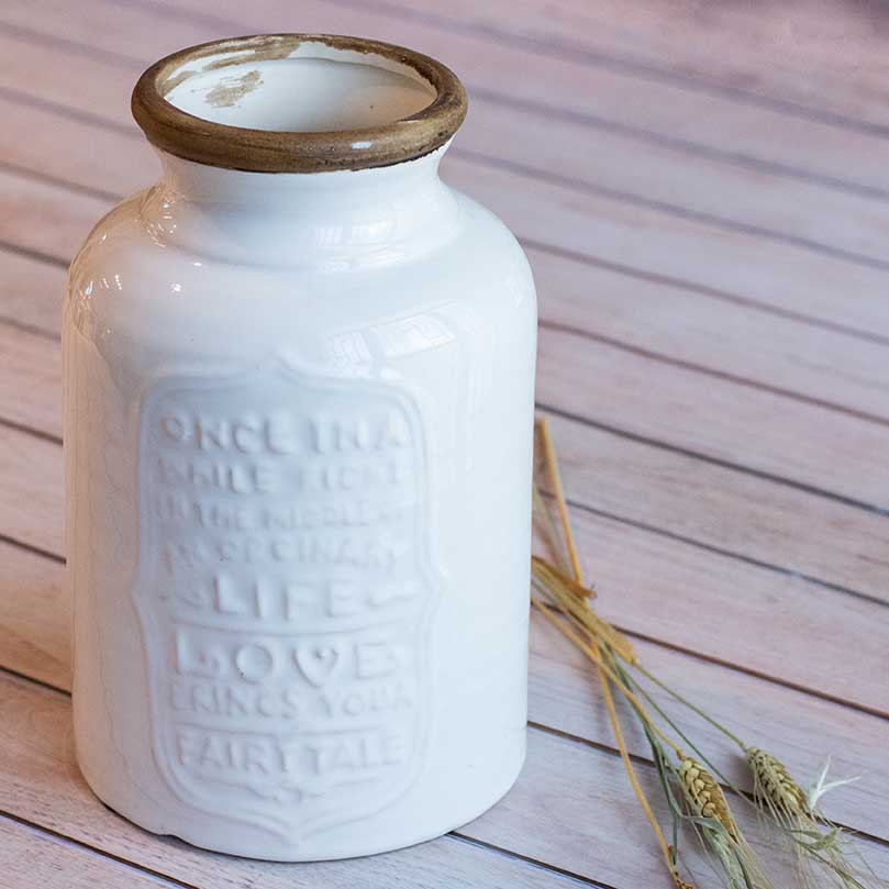 Jarrón de cerámica texturada blanco de 16cm x 16cm.