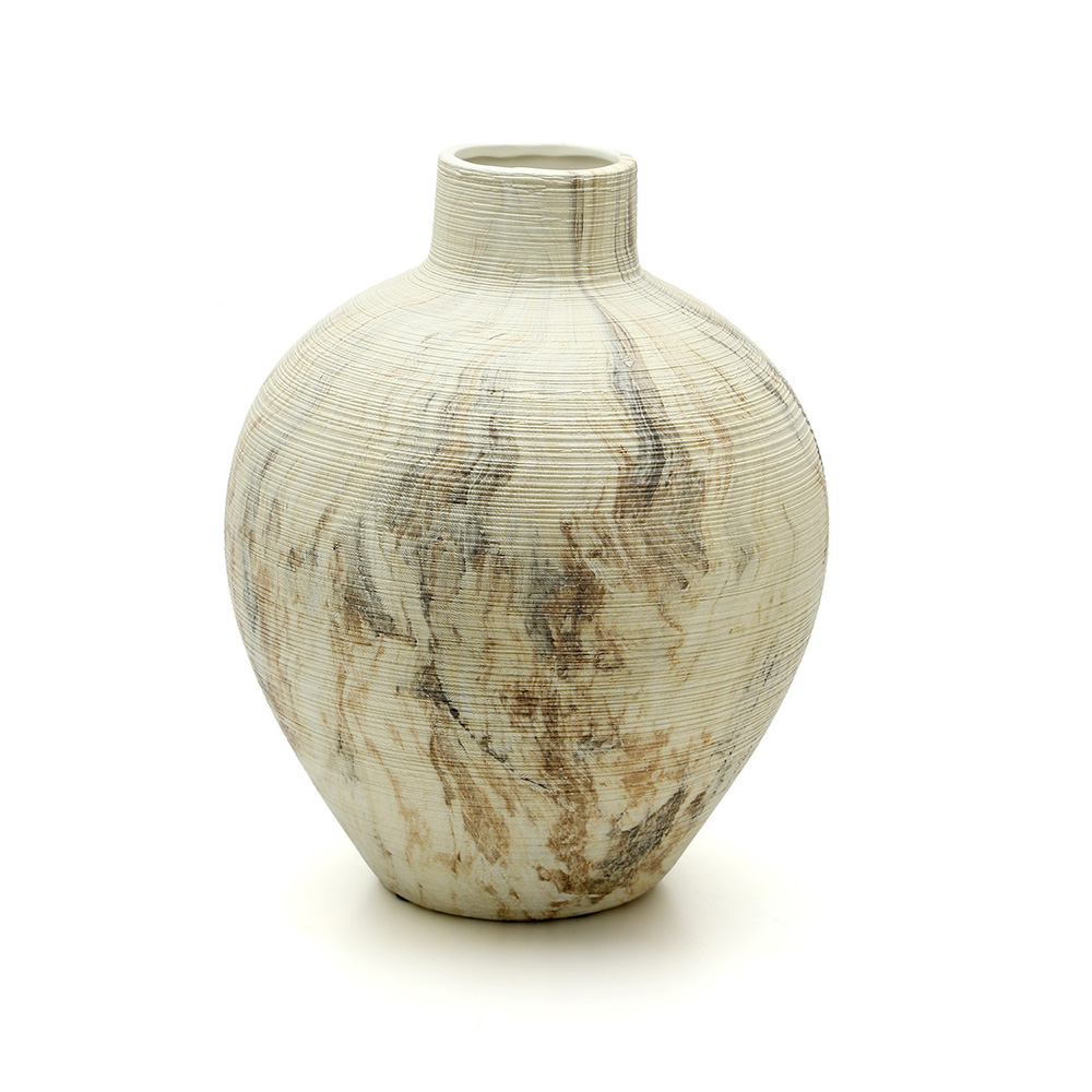 Jarrón de cerámica texturada diseño símil mármol de 23cm.