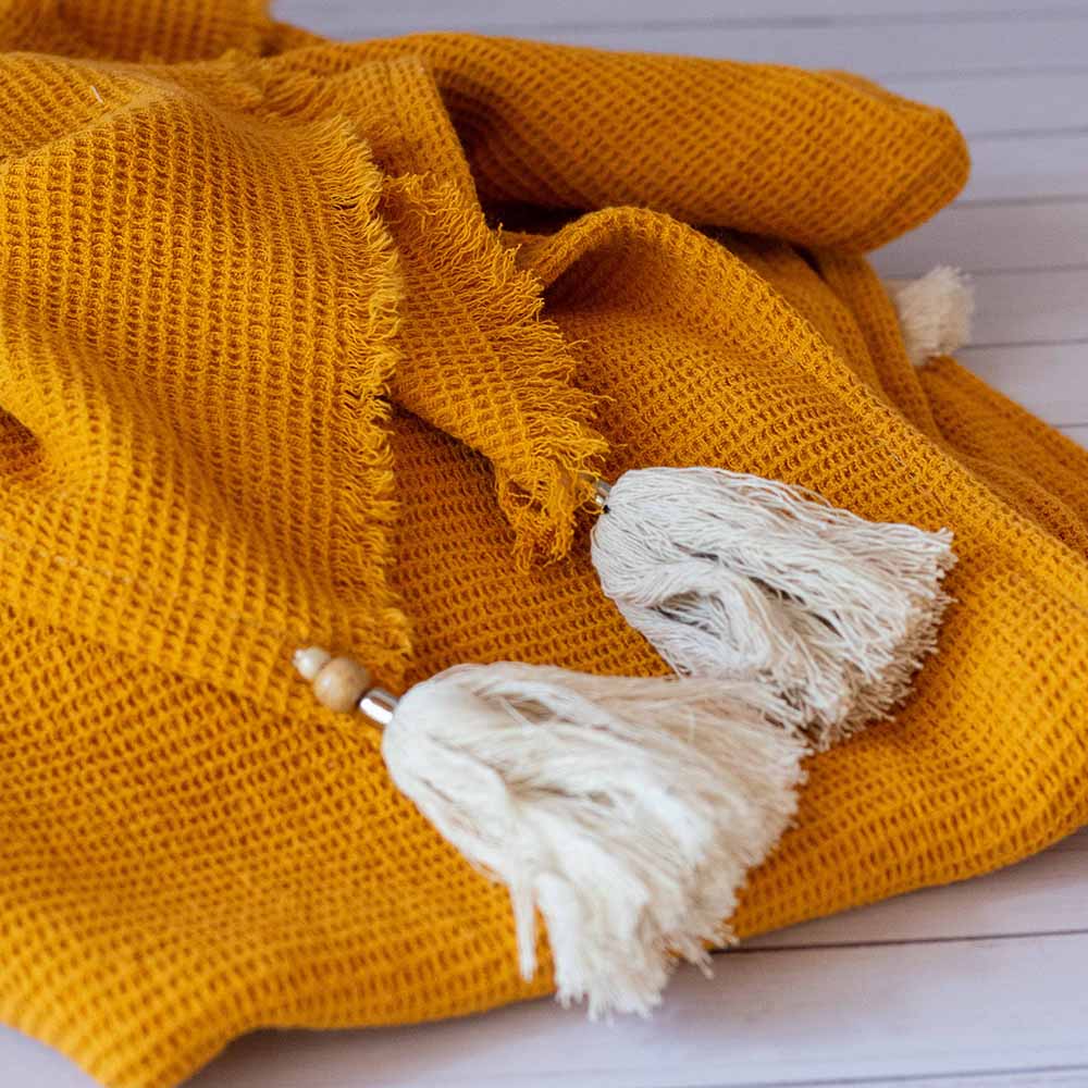 Manta wafle en color mostaza de 2.30 x 1.10cm