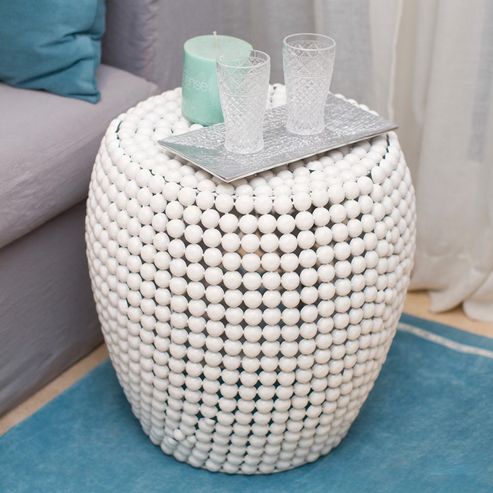 Mesa de metal con diseño de circulos en toda su superficie color blanco de 48cm.