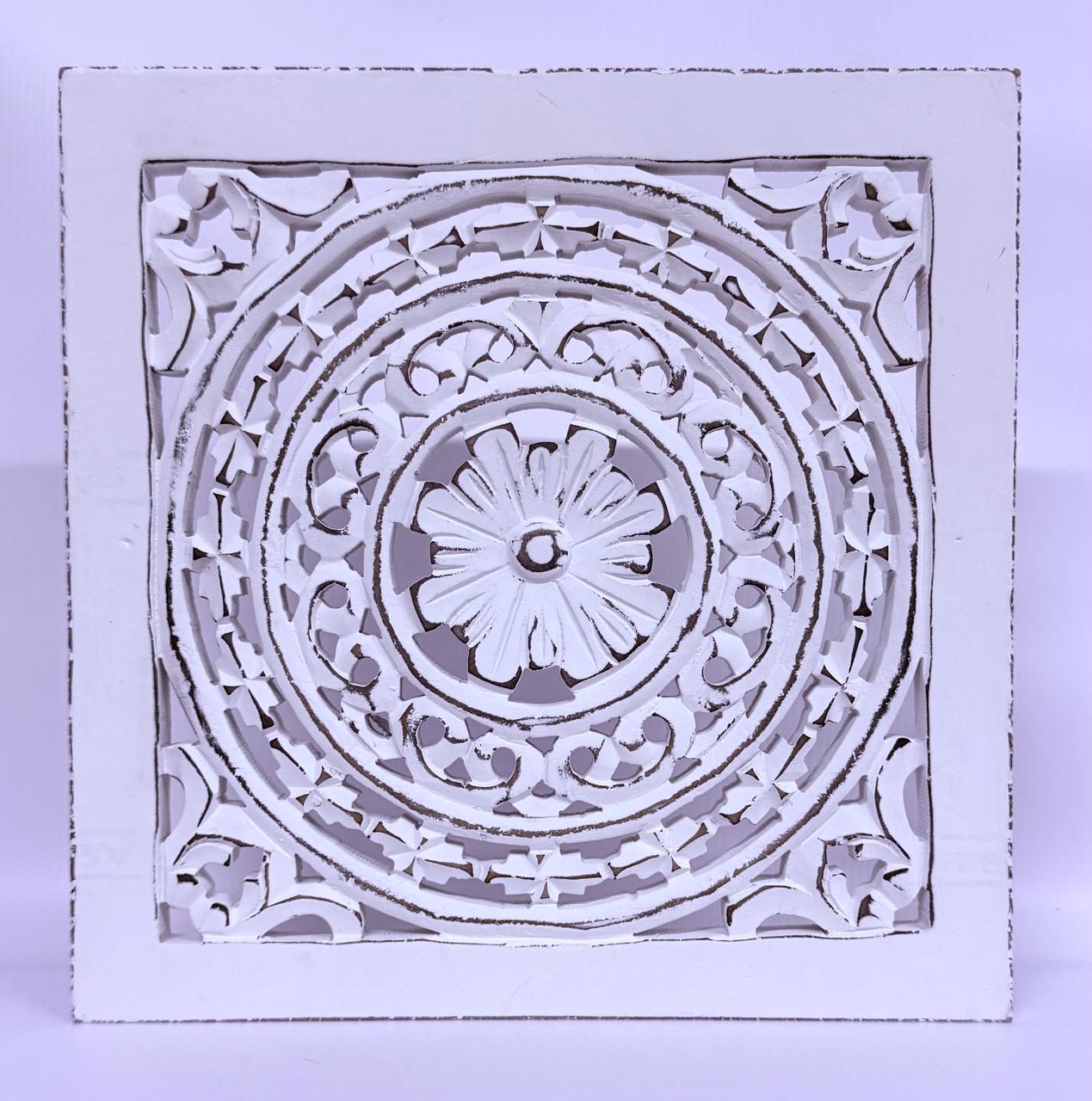 Mural de madera calada blanco mate de 31cm x 31cm y 1cm de espesor.