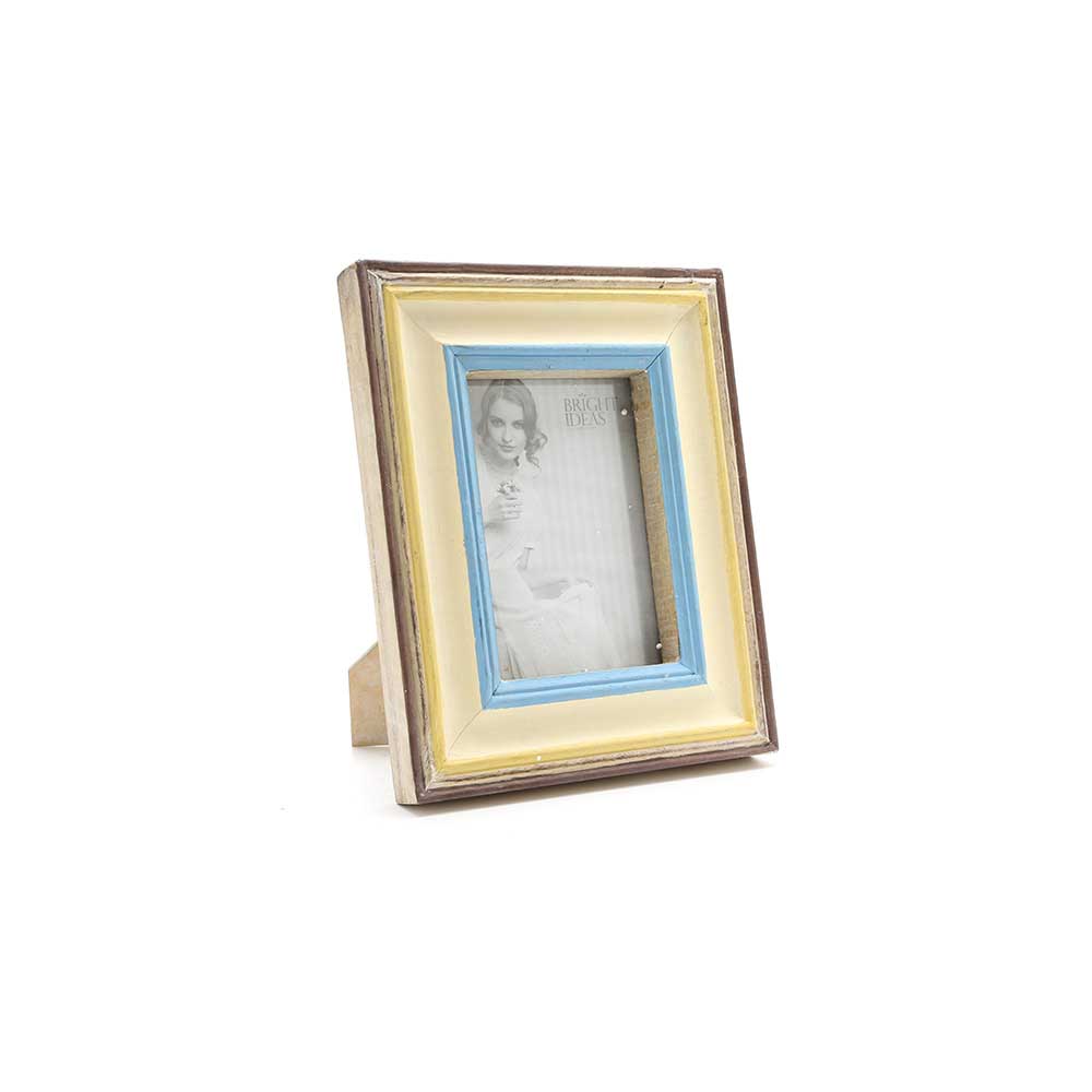 Portarretrato de madera arena y celeste de 12cm x 17cm.