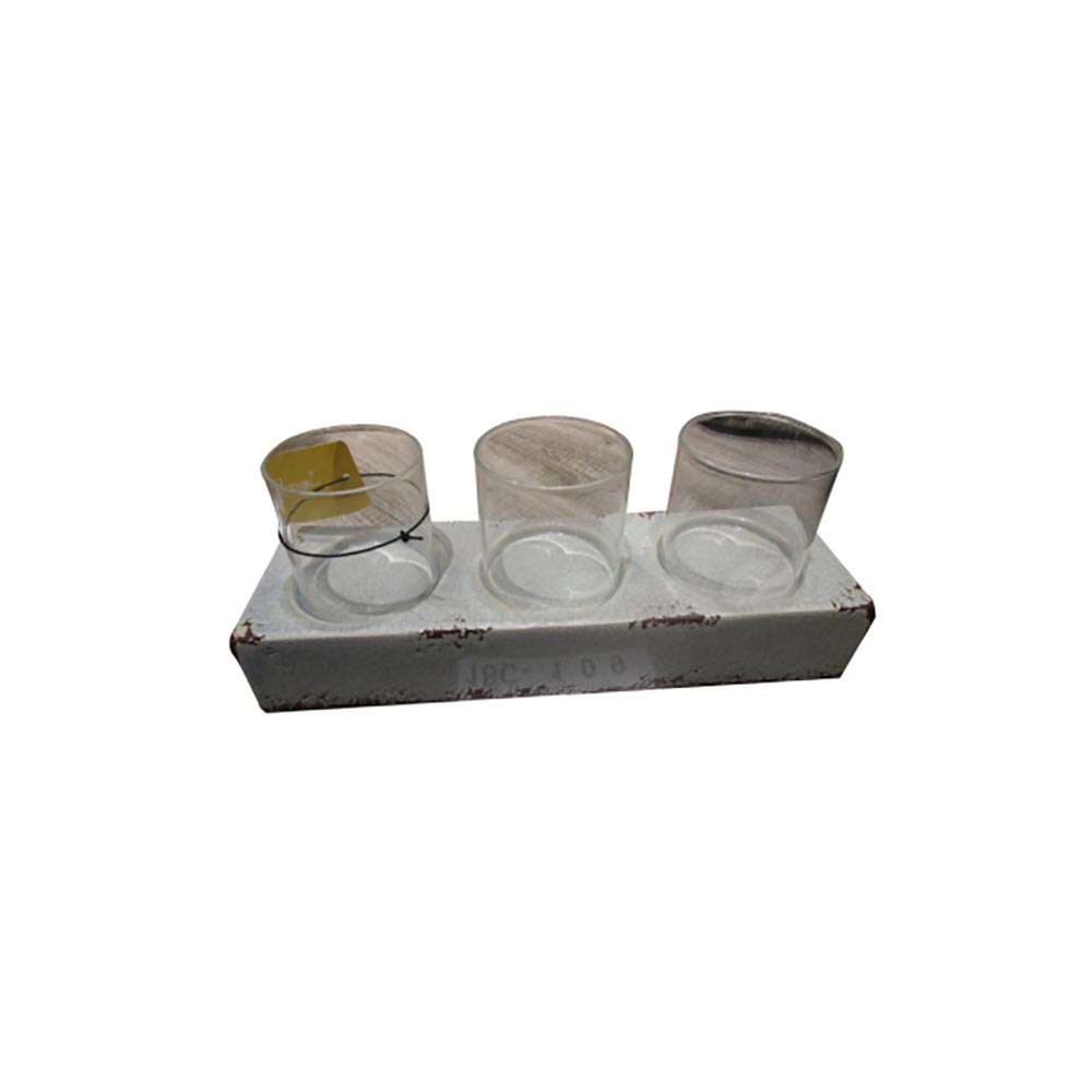 Portavela triple en base de cerámita y fanales de vidrio de 29cm.