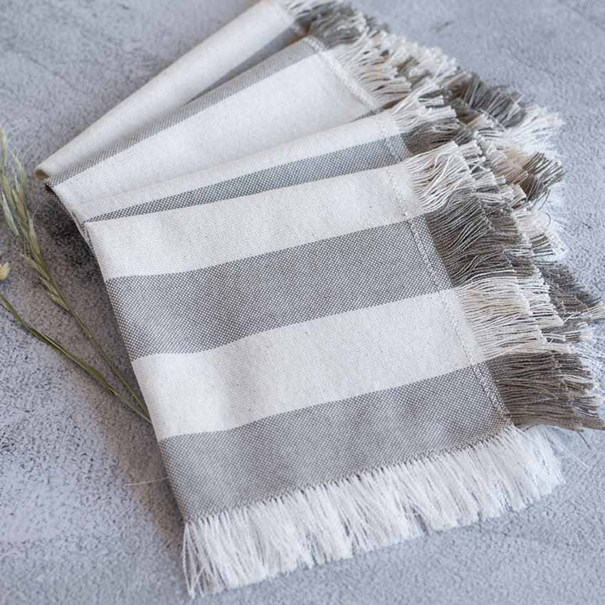 Servilleta Lino nature Raya Gris/crudo