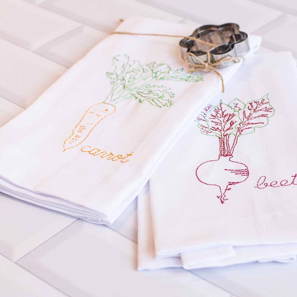 Set de 2 toallas de cocina blancas bordadas con accesorios