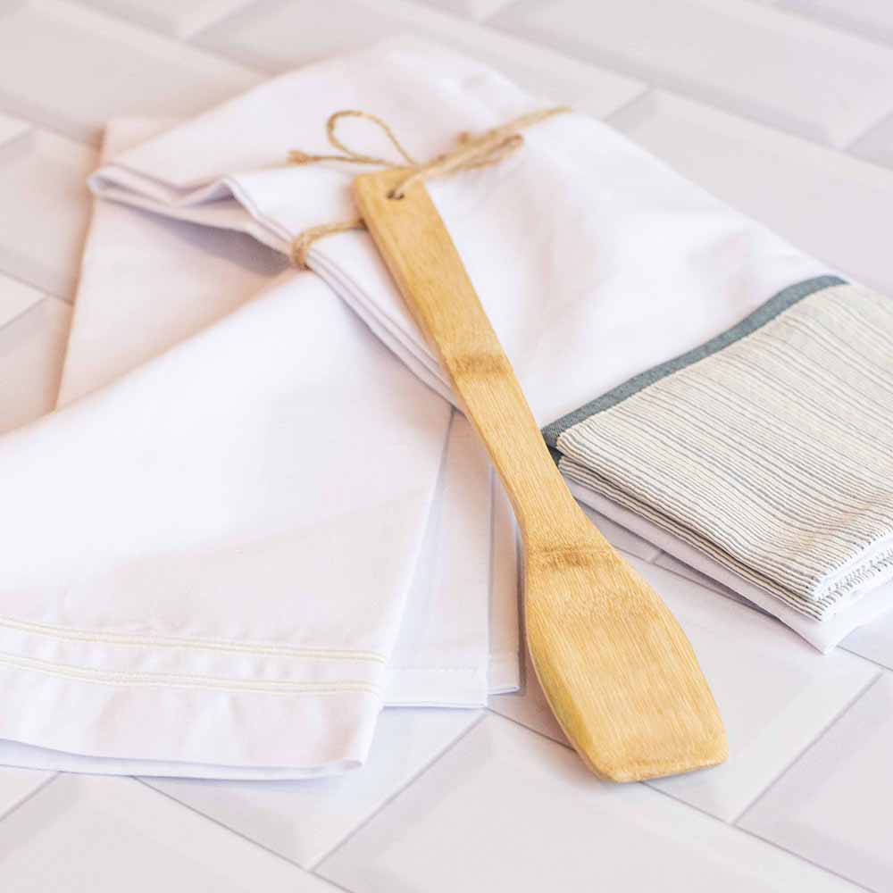 Set de 2 toallas de coicna blancas con zocalo con estampa rayada en verde con accesorios