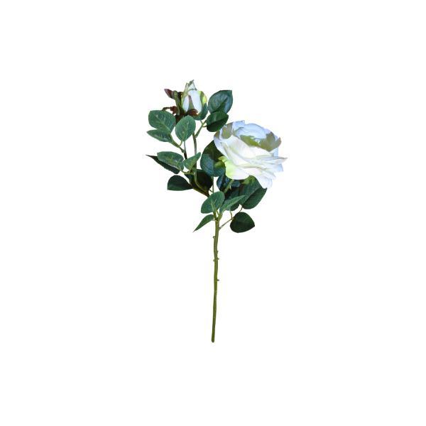Vara larga de Rosa y rosita blanca de tela de 60cm.